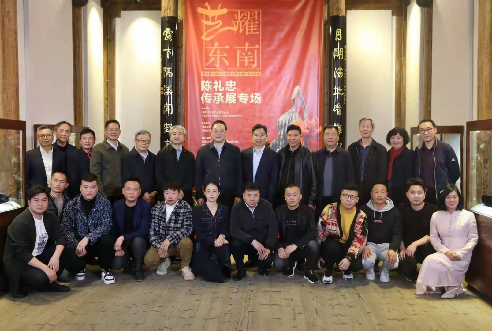2月24日上午,“艺耀东南”——中国工艺美术大师陈礼忠师徒展在福建省海峡民间艺术馆开幕,专场展出我校工艺美术研究院院长陈礼忠教授及其弟子的精品力作。省人大常委会副主任严可仕,我校校长廖深基,民进省委会专职副主委林全金,省文联党组成员、书记处书记、省美术家协会主席王来文,海峡出版集团副总经理何强等共同为展览启幕。