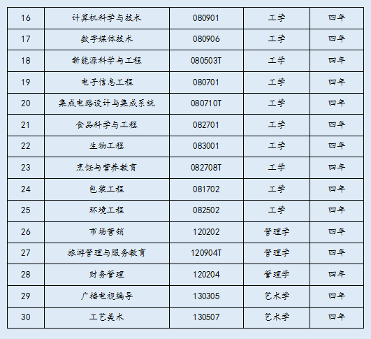 目前,我校共设有本科专业30个,涵盖8个一级学科门类。其中,经济学2个专业,法学2个专业,教育学3个专业,文学5个专业,理学3个专业,工学10个专业,管理学3个专业,艺术学2个专业。(教务处)