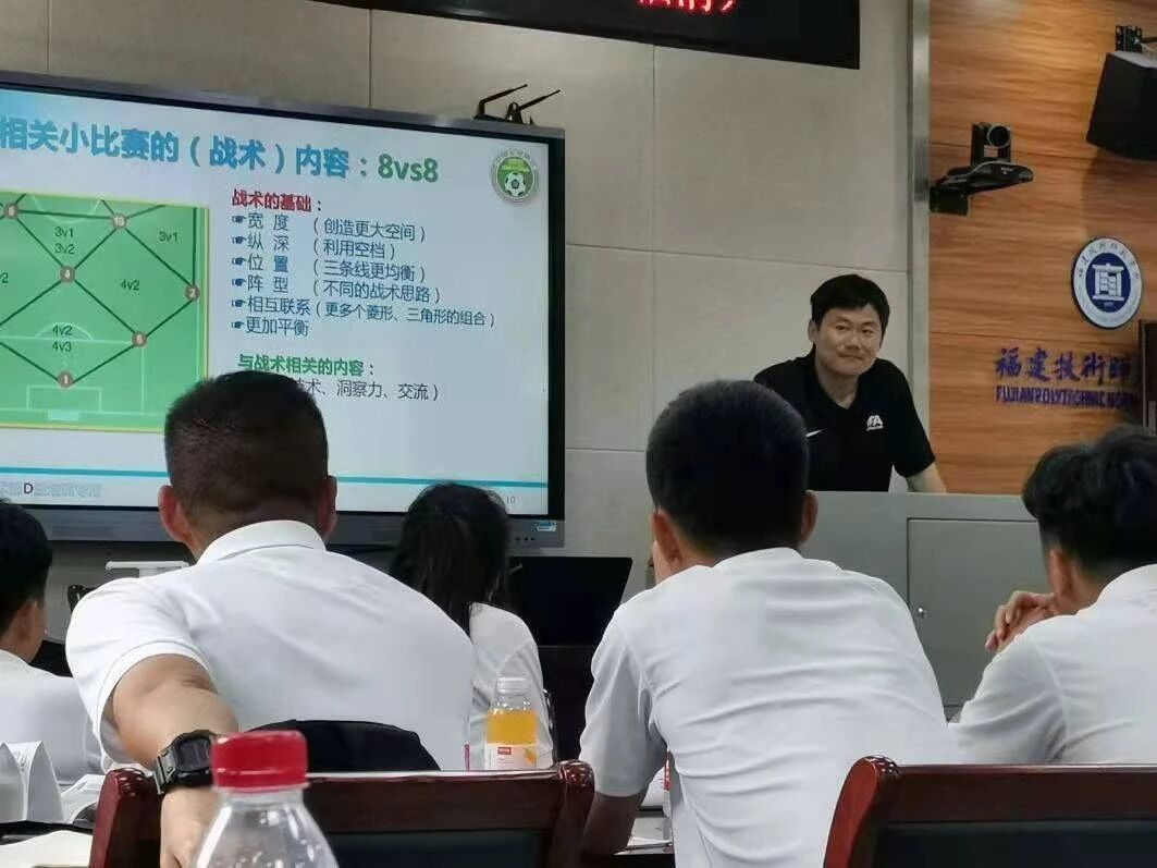 为了更好地推广与普及足球运动,提高教育系统足球带队教练员的业务水平与技战术能力,大力发展福建省青少年足球教练队伍,4月30日至5月6日,2021年教育部大体协-中国足协D级教练员培训班在我校举行,共有来自我省各高校、中小学、教育部门等单位推荐的24名教练员参加培训。