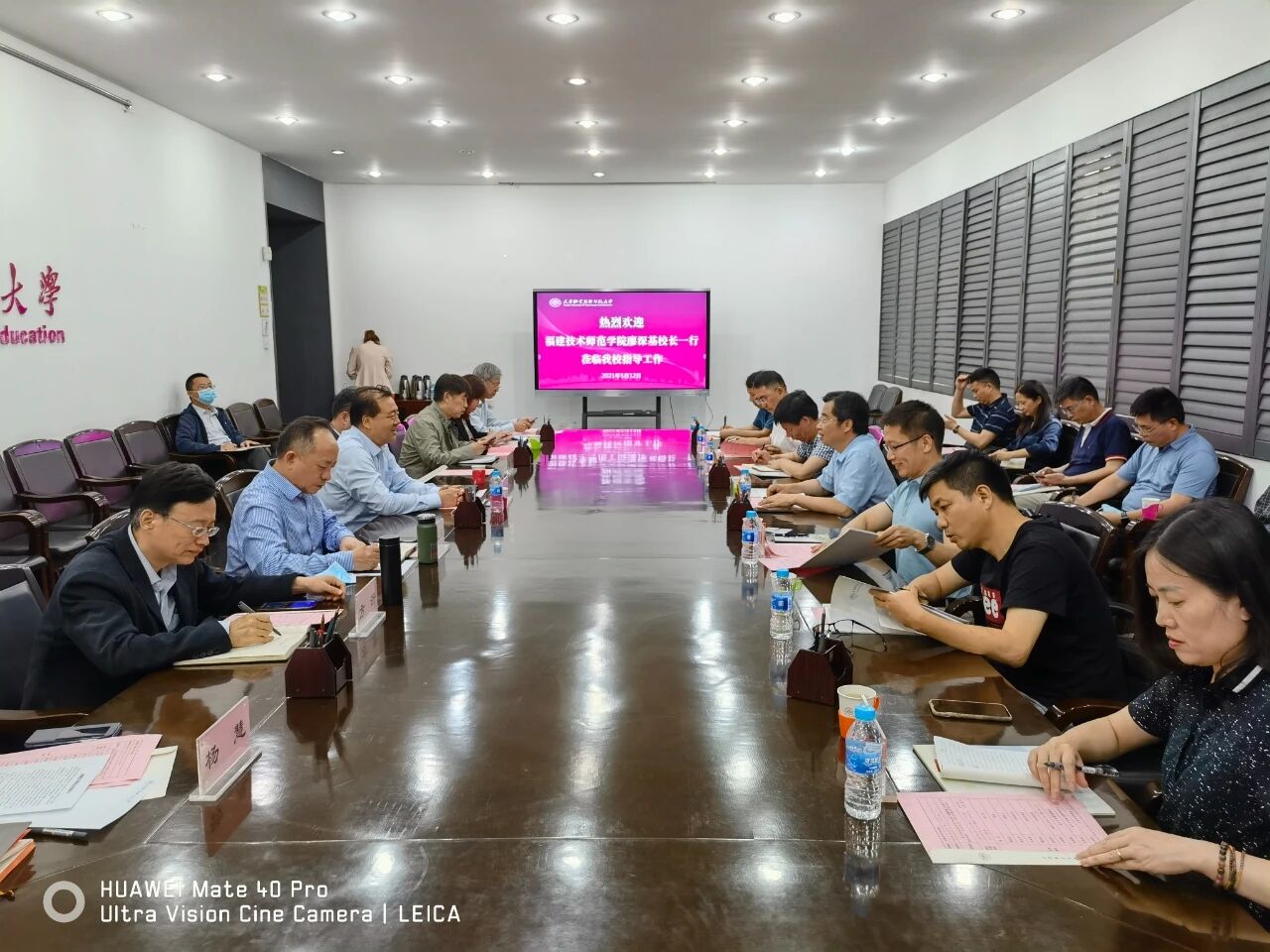 5月12日至5月13日,校长廖深基带队前往天津职业技术师范大学调研学习,并受到天津职业技术师范大学党委书记张金刚、副校长阎兵的热情接待。副校长陈志勇,学校办公室、人事处、教务处、科研处、教师工作部(处)、发展规划处以及实体学院负责人参加了调研活动。