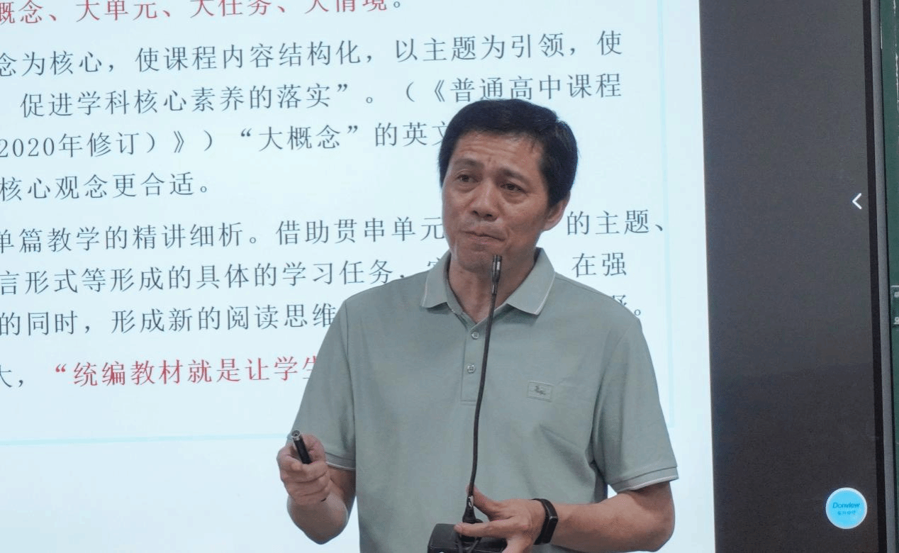 冯直康老师指出语文教材在意识形态建设和传承传统文化方面意义重大,而人工智能的发展给语文教学带来新的挑战与转型契机。他围绕单元、素养、任务、情景四个关键词,说明语文教材在题目设计与选文内容有所创新。针对教材修订的基本情况,冯直康老师表示当今的语文教材更加注重宣传三大文化、增加教学灵活性。在提问环节,冯直康老师与在场师生展开深入的交流与讨论。